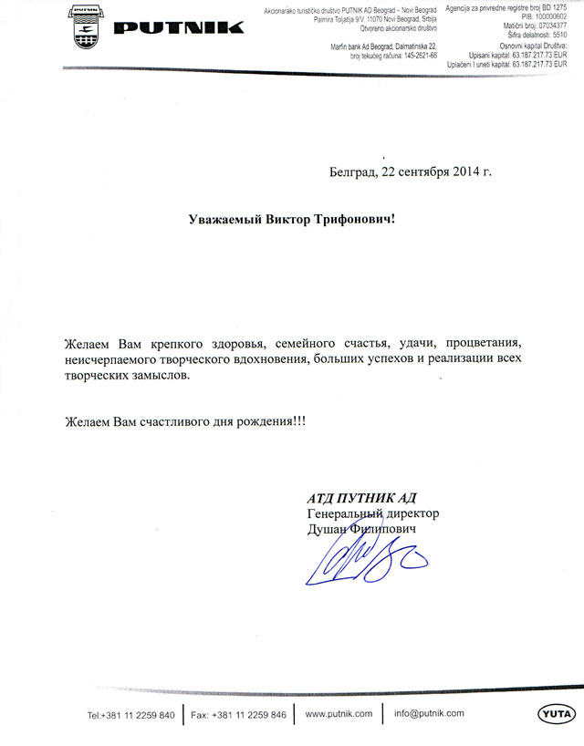 22.09.2014   Имя: Душан Филипович   г. Белград (Сербия)