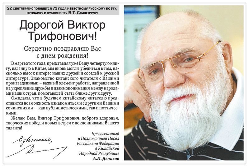 Газета «Аргументы Недели» (№38(986), 24 - 30 сентября 2025 г.) поздравила Виктора Трифоновича Слипенчука с днём рождения и опубликовала подборку его стихов.