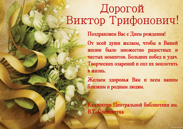 От всей души поздравляю Вас с Днём рождения и желаю новых творческих удач, крепкого здоровья и долголетия!