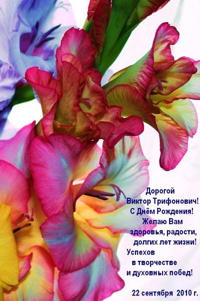 Сердечно поздравляю Вас с Днём рождения! От всей души желаю Вам счастья, здоровья, реализации творческих замыслов!