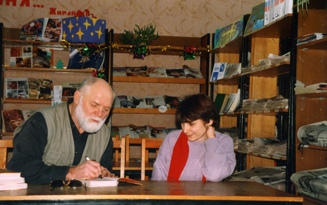 Приморский край, село Черниговка, районная библиотека. Авторские экземпляры романа «Зинзивер» – для родной библиотеки. 2001 г.