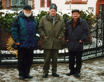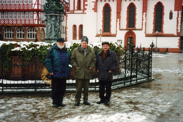 Площадь Римлян. Виктор Слипенчук, Василь Быков и Алесь Кожедуб. Франкфурт-на-Майне, 2001 г.