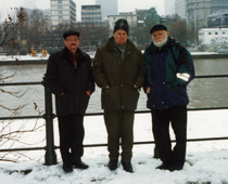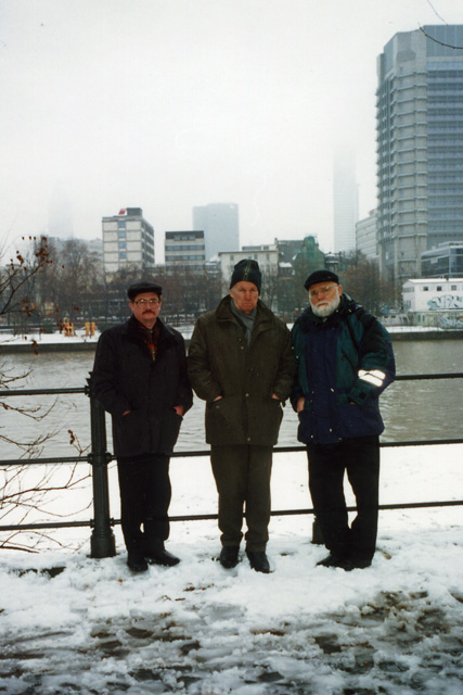Река Майн. Алесь Кожедуб, Василь Быков и Виктор Слипенчук. Франкфурт-на-Майне, 2001 г.