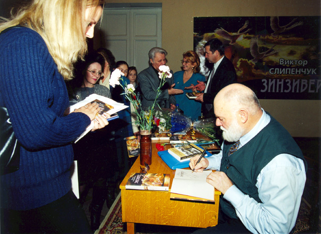 Презентация романа «Зинзивер» в областной библиотеке. Корреспондент Светлана Кукина и Виктор Слипенчук. Нижний Новгород. 2001 г.