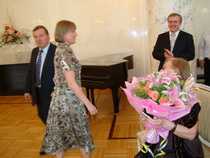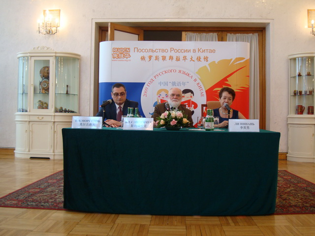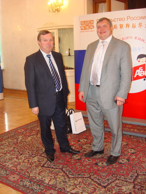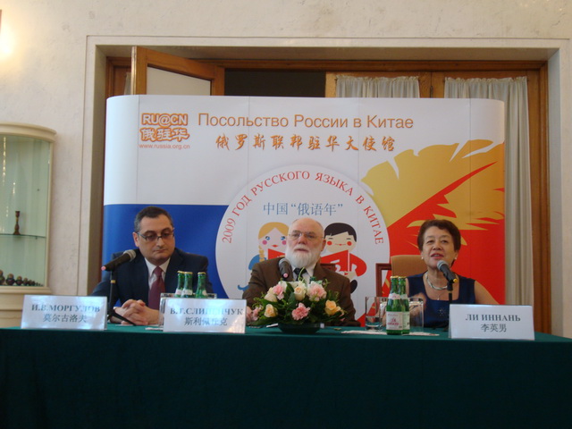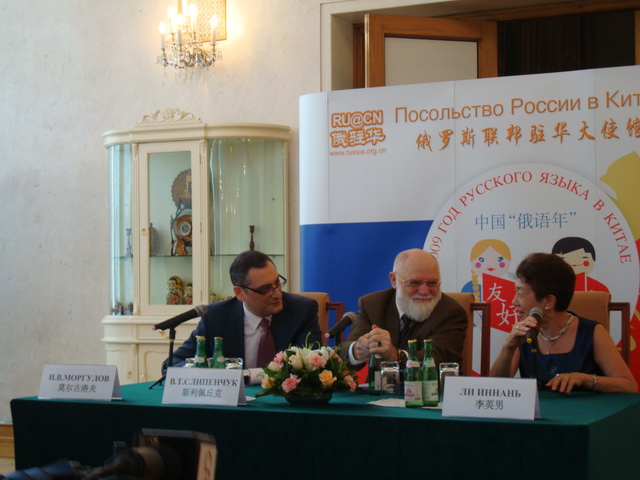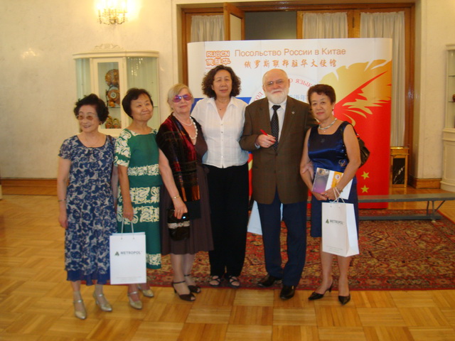 Сергей Сергеевич Разов, Виктор Трифонович и Галина Михайловна Слипенчук | |  М.В.Слипенчук и С.С.Разов | |  И.В.Моргулов (Советник – Посланник), В.Т.Слипенчук, профессор Ли Иннань (зав. Кафедрой русского языка Пекинского государственного университета) |