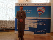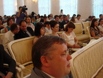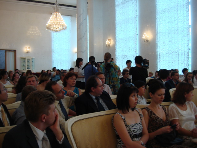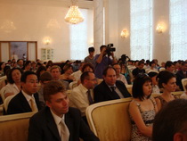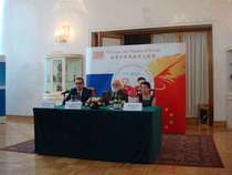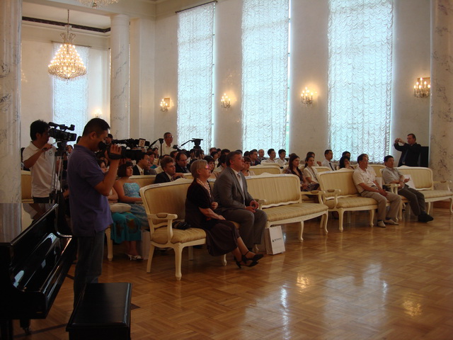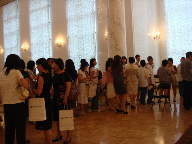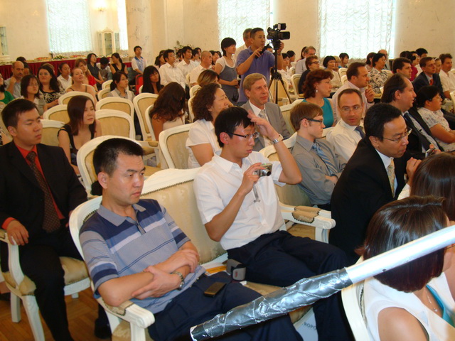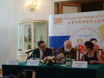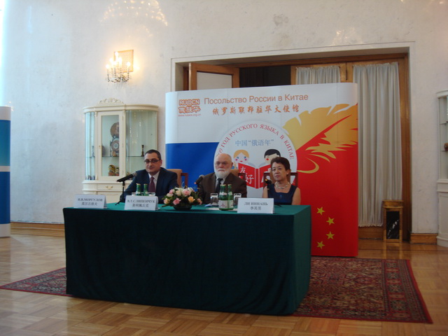 | |  Третий секретарь Посольства РФ в Китае Федор Стржижевский объявляет о начале презентации | |  Гости прибывают. Актовый зал Посольства РФ в Китае |