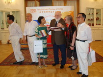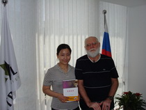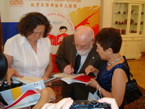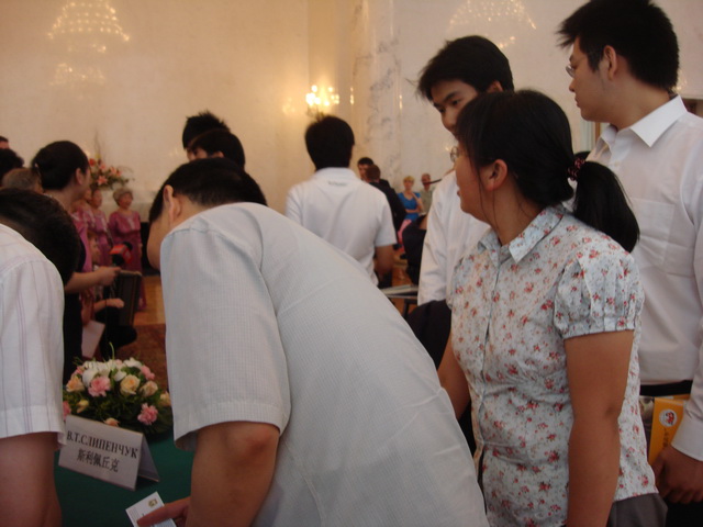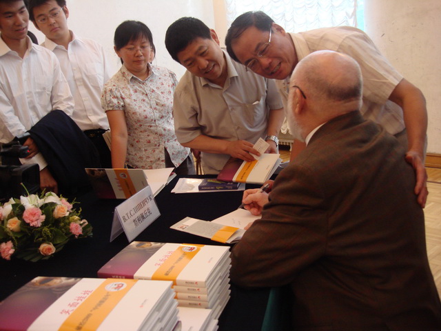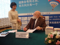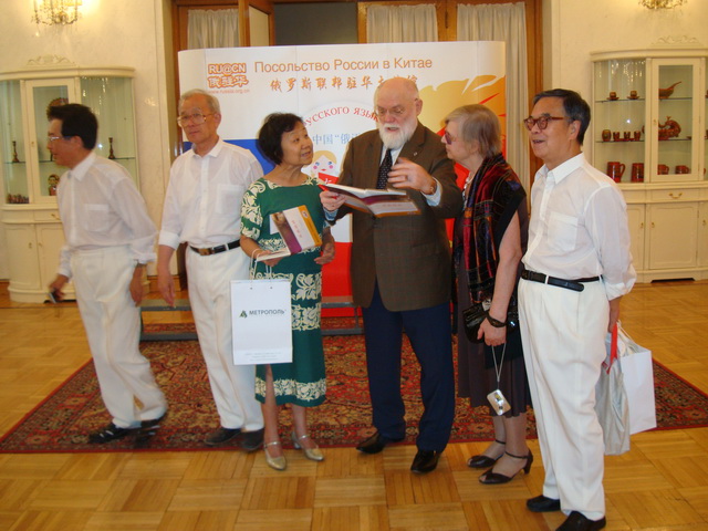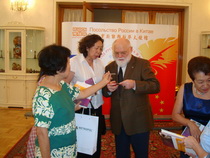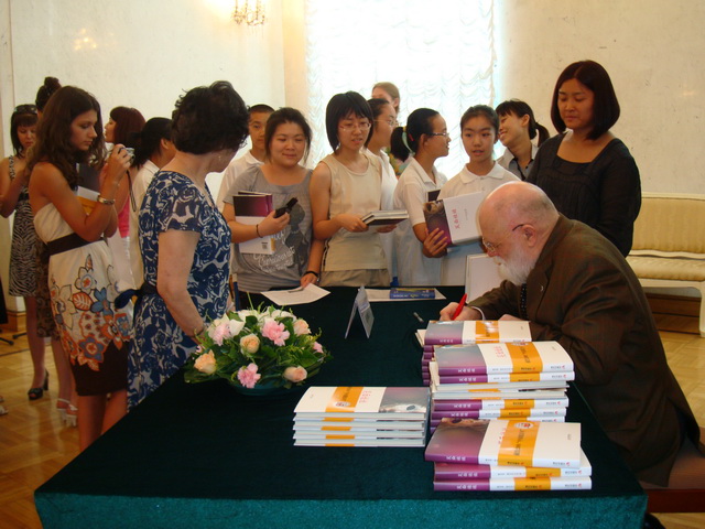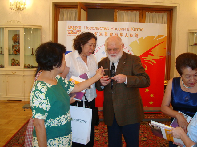 Книги закончились. Автор подписывает свой сборник стихов зав. Кафедрой русского языка Пекинского университета, профессору Ли Иннань | |  | |  |