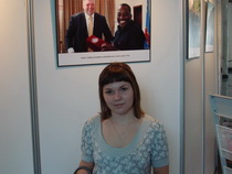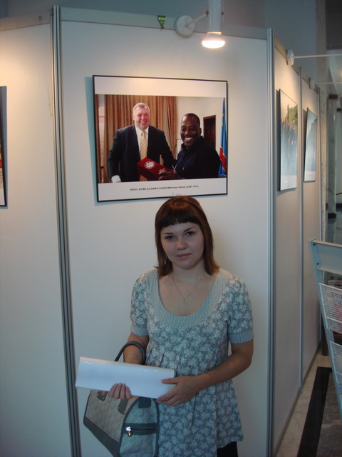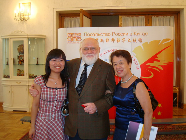 Фото на память | |  Студентка-русистка Таня пользуется особой популярностью (она читала отрывок из книги на русском языке) | |  Студентка Таня, Виктор Слипенчук и Ли Иннань |