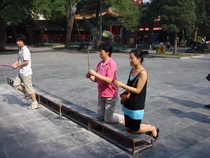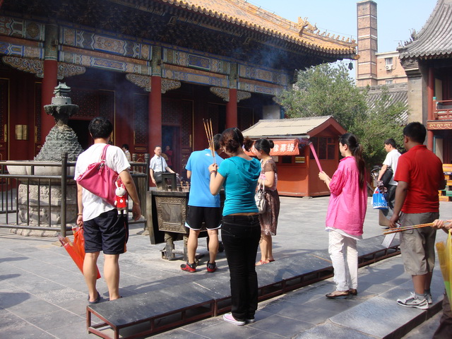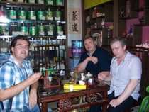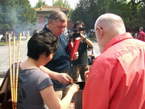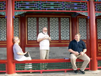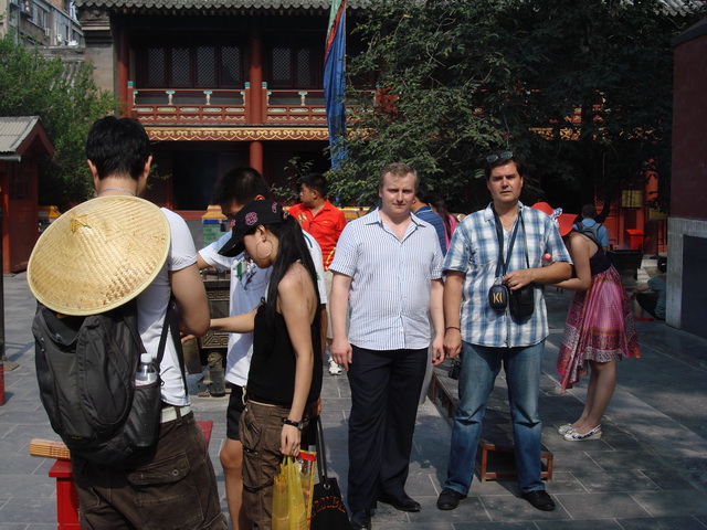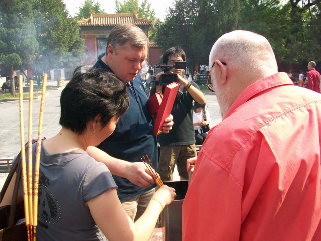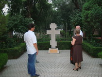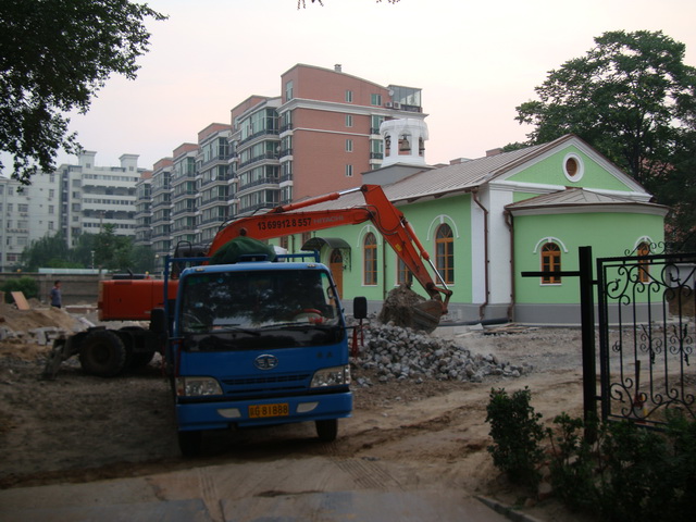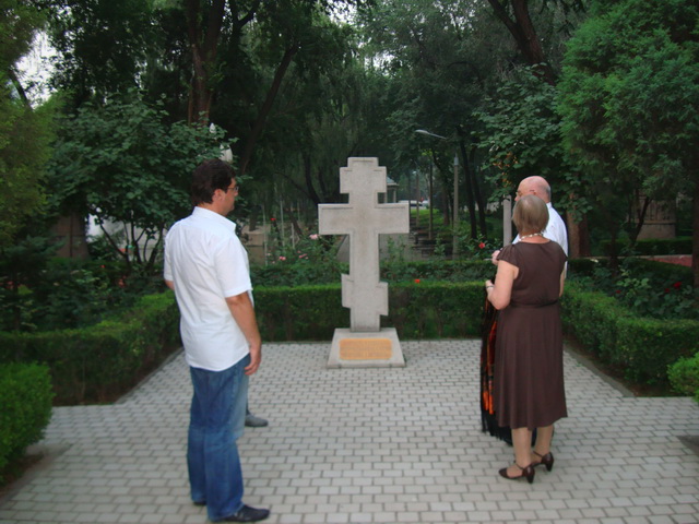 Во дворике строящейся церкви | |  Красная фанза (резиденция Митрополита) | |  Перед встречей с Послом РФ в Китае С.С.Разовым |