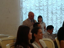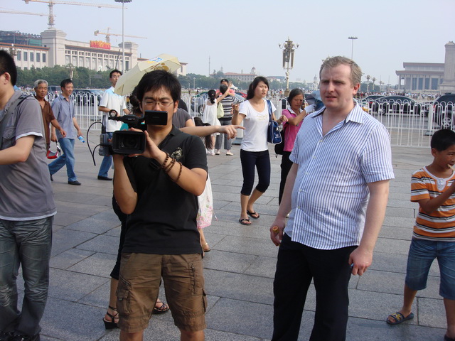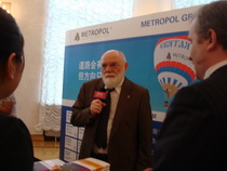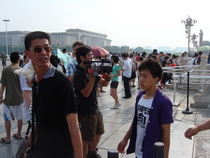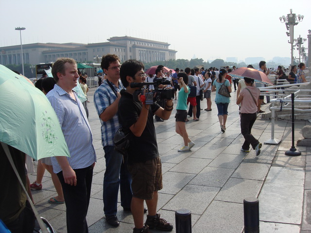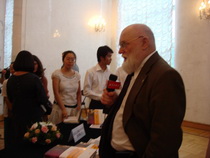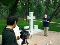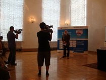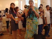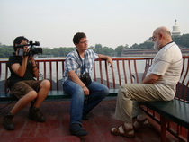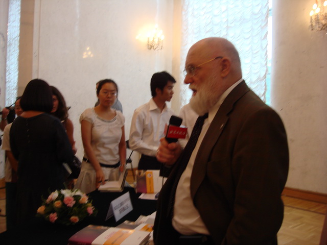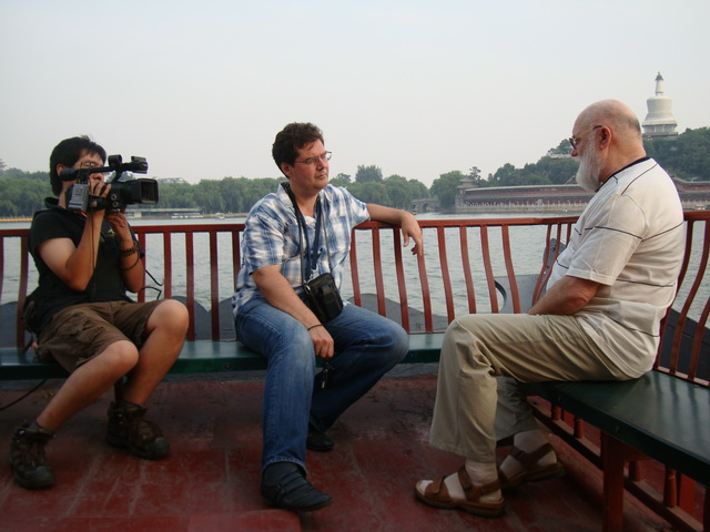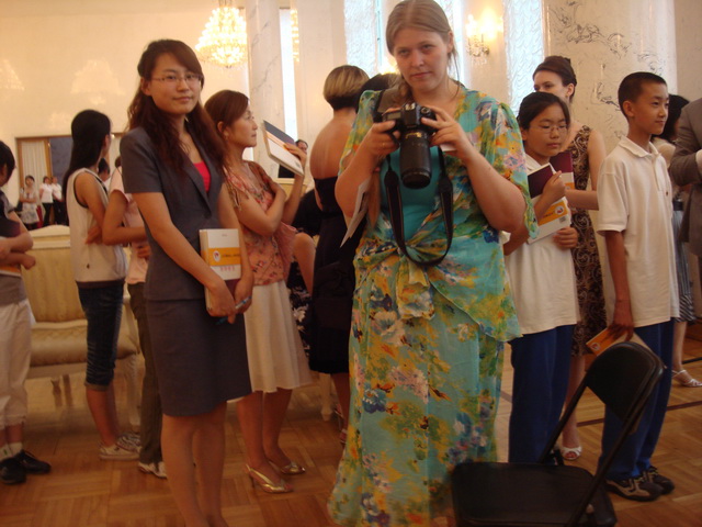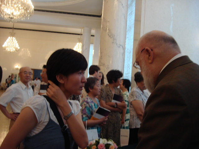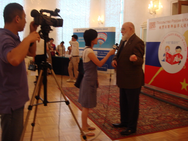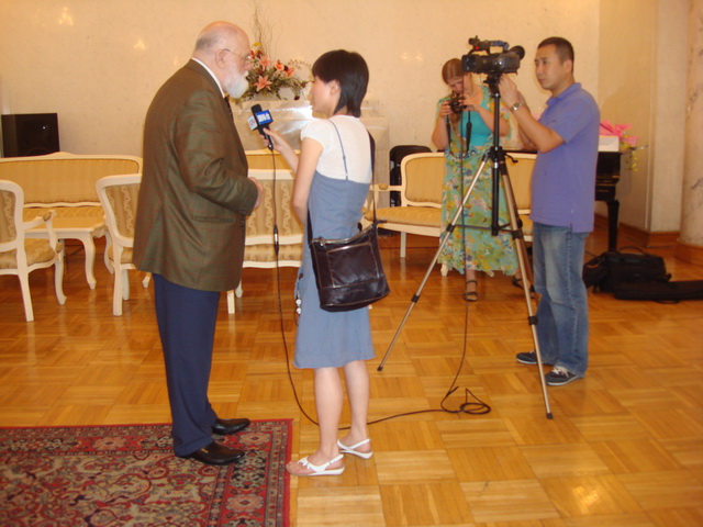 | |  За автографами | |  Интервью ежедневной газете «Культура». В центре – корреспондент Zhai gun |
