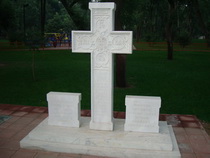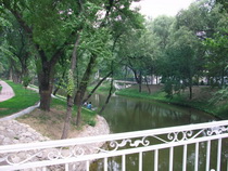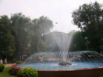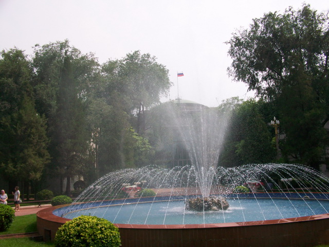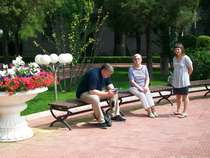 В парке при посольстве РФ | |  Галина Михайловна Слипенчук | |  На фоне строящейся церкви (справа) при посольстве РФ |