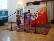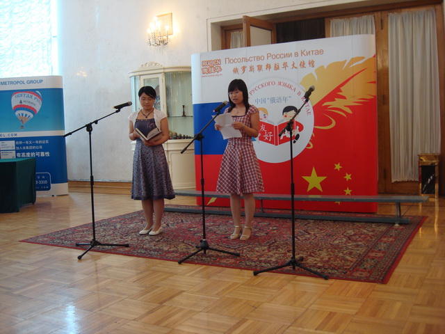 | |  Студентки Пекинского университета читают отрывки из «Смеющегося пупсика» на русском и китайском языках | |  |