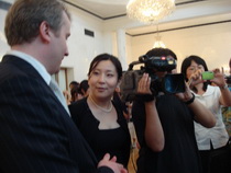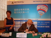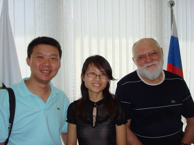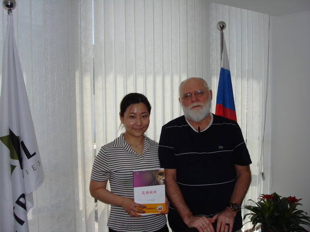 | |  Фото на память о встрече | |  Переводчик В.Желобецкий и корреспондент «Жэньминь Жибао» Эмма Вонг |