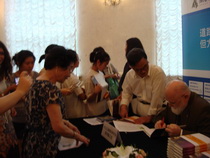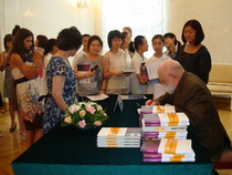 Интервью газете «Жэньминь Жибао». Корреспондент Эмма Вонг и Виктор Слипенчук | |  Очередь за автографами не кончается | |  Импровизированная беседа с читателями |