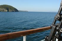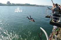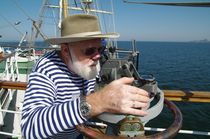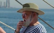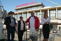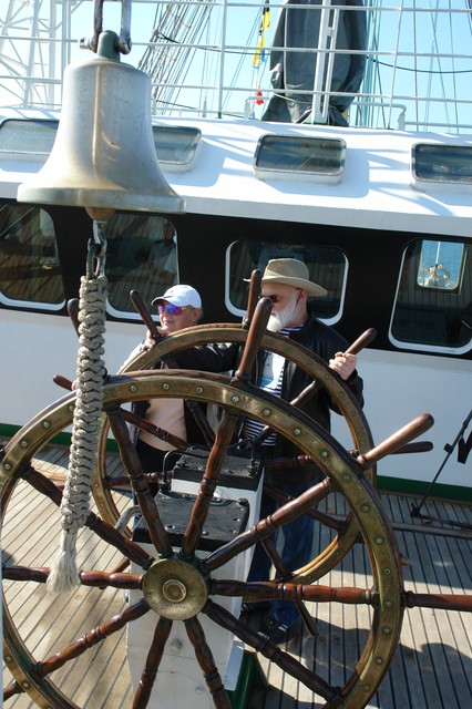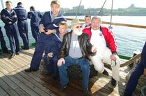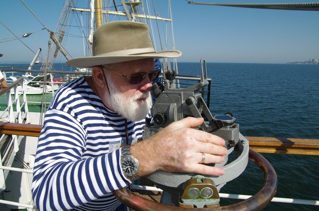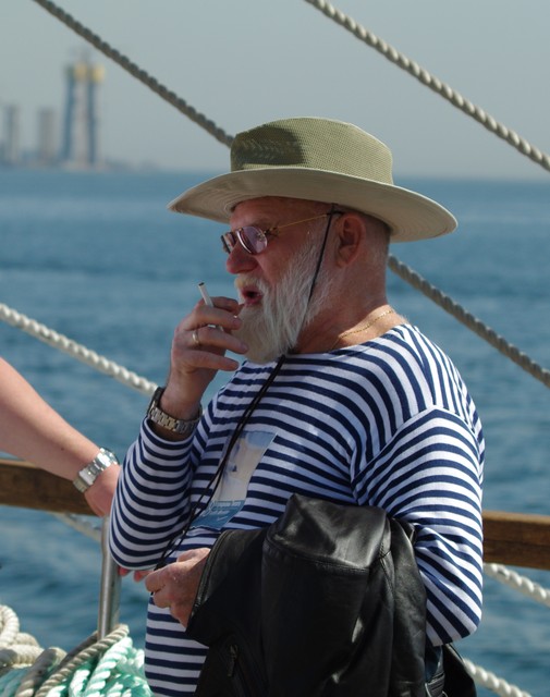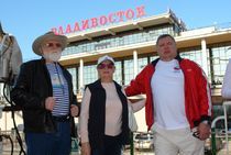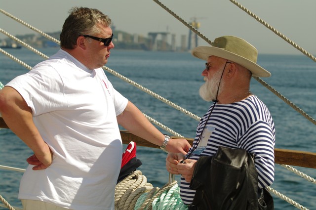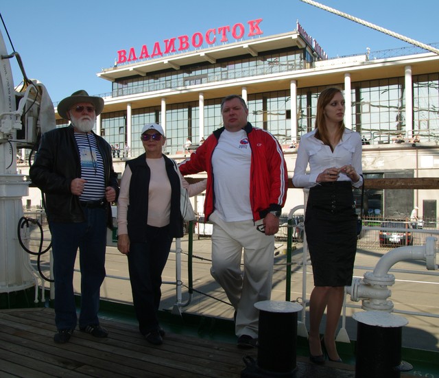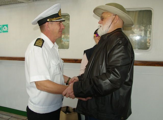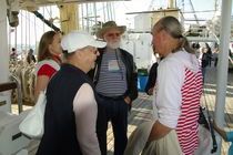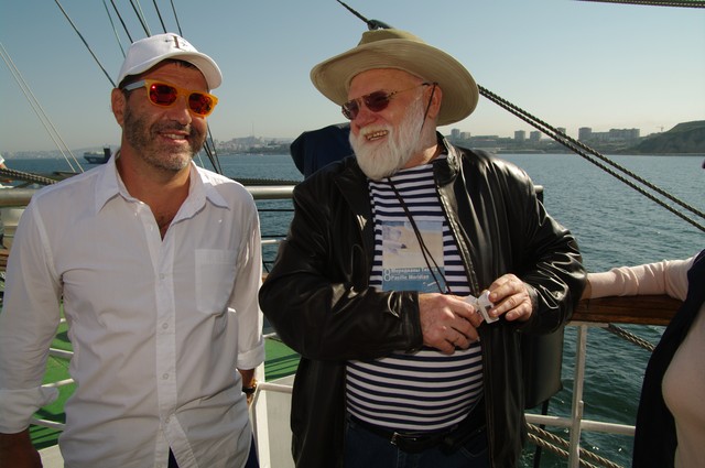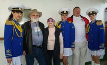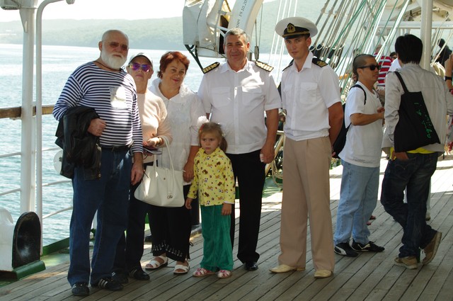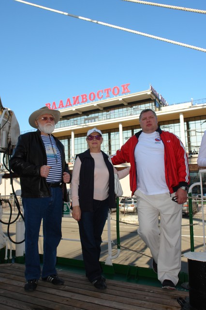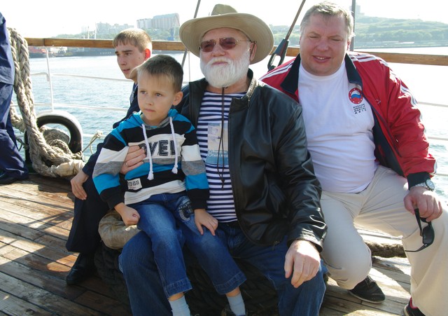 В.Т., Г.М. и Михаил Слипенчук на трапе парусника