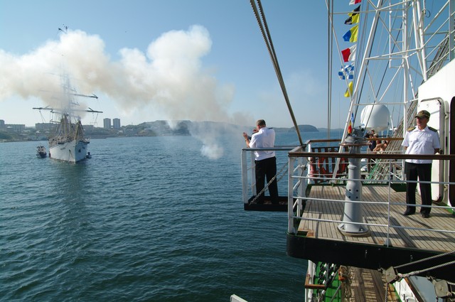 Дружеское рукопожатие капитана «Паллады» Н.К. Зорченко