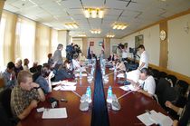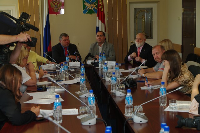 Пресс-конференцию ведет Вице-спикер Администрации Приморского края Д.А. Текиев (в центре)