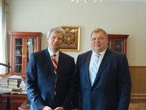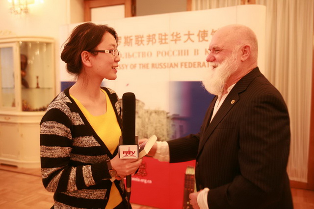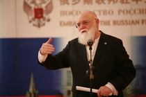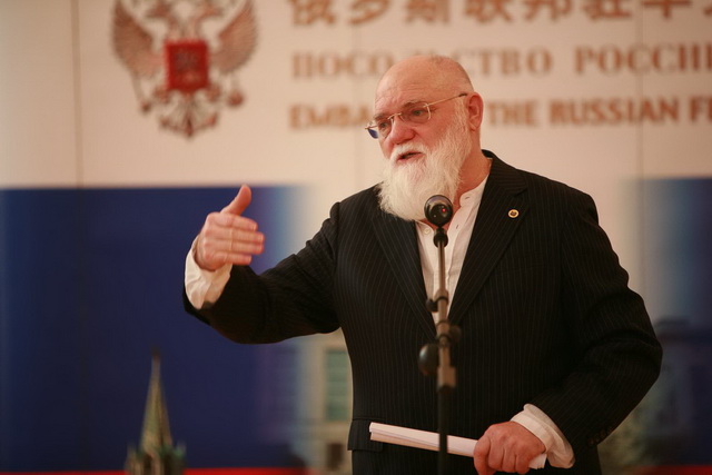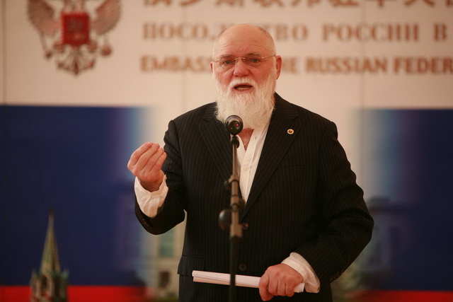 На приёме у Посла России в КНР Сергея Сергеевича Разова: Виктор Трифонович и Галина Михайловна Слипенчук | |  С.С. Разов и М.В. Слипенчук | |  Приветственная речь советника – посланника Посольства России в КНР Евгения Томихина |