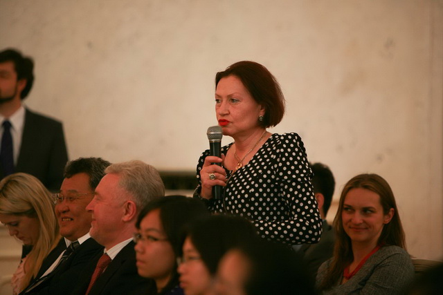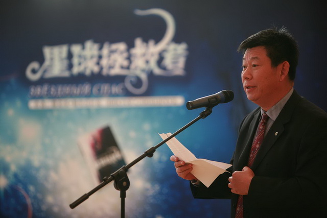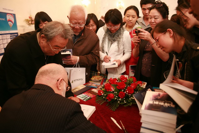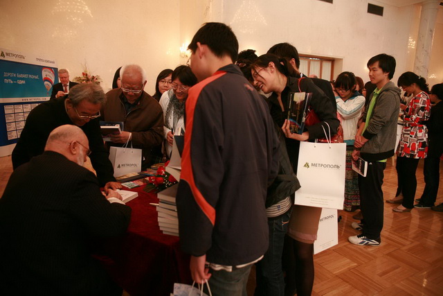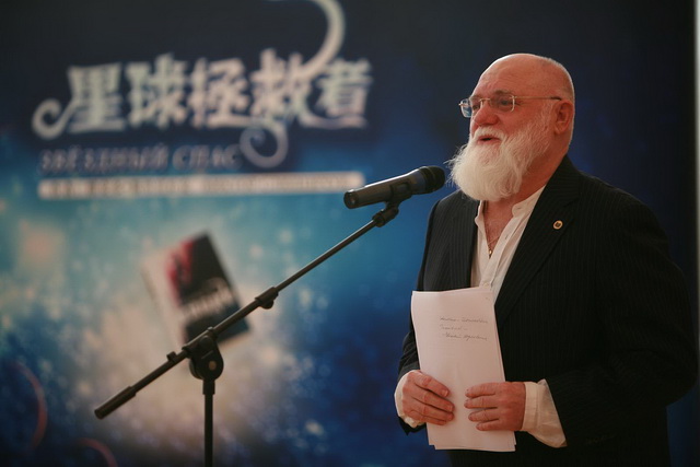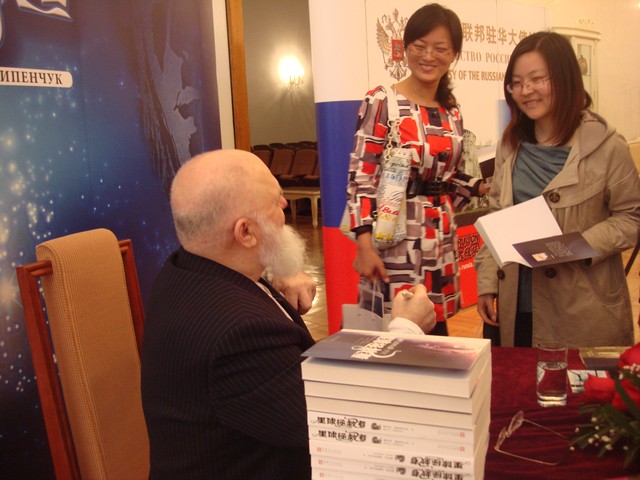 Выступление Главного редактора издательства «Народная литература» Гуань Шигуаня | |  Выступление известного руссиста Тянь Давэя. «Роман «Звёздный Спас» очень актуален… Хорошо известный нам девиз «Один за всех и все за одного!» наполняется в романе новым смыслом: никому в одиночку не справиться с трудностями, перед лицом которых стоит человечество» | |  В своём ответном выступлении Виктор Слипенчук рассказал о китайских поэтах и мыслителях Ли Бо, Ду Фу, которые расширили его взгляд на поэзию и позволили взглянуть на русскую литературу глазами китайцев |