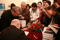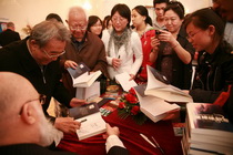 Фото на память о презентации. Виктор и Галина Слипенчук, Тянь Давэй. За ними: Ли Цзюньшень, Фэн Хуаинь, руководитель департамента изд. «Народная литература» Цжао Пин, Вэнь Чжэсянь и Михаил Слипенчук с сотрудниками «Метрополя»: Василием Желобецким, Олегом Великоредчаниным с супругой Мариной и Романом Ким | | | | |