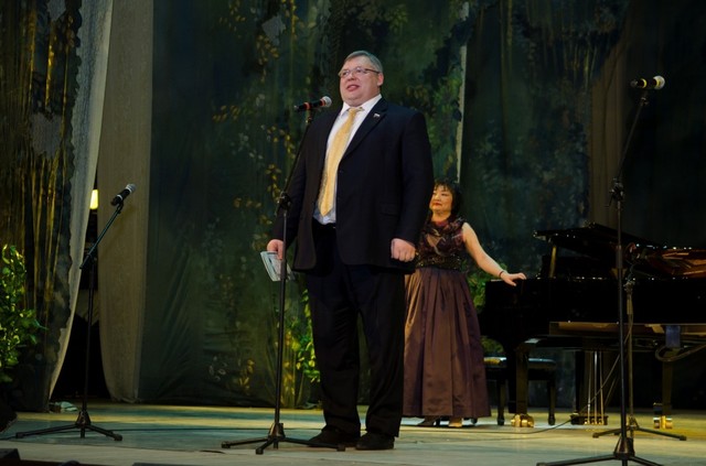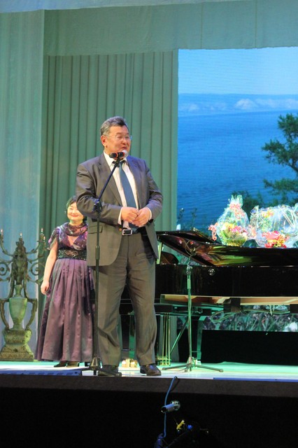 Б.Д. Цыренов приглашает на сцену композитора В.А. Усовича