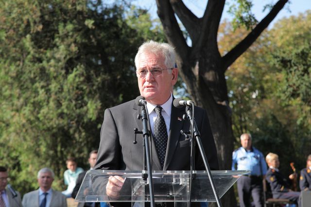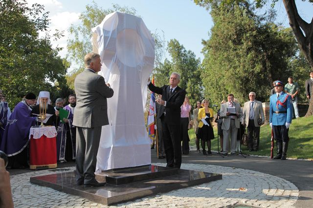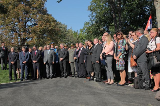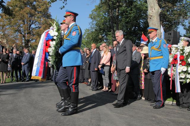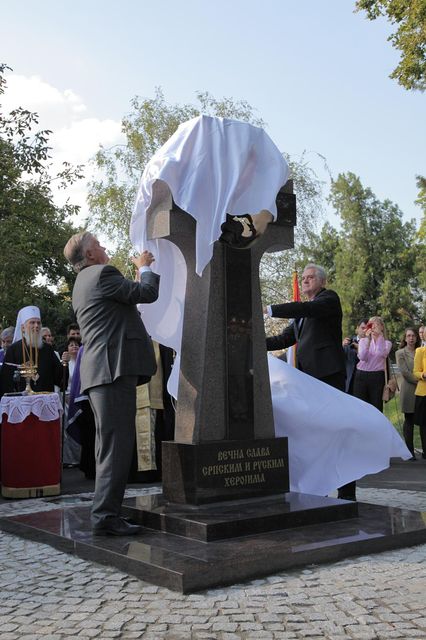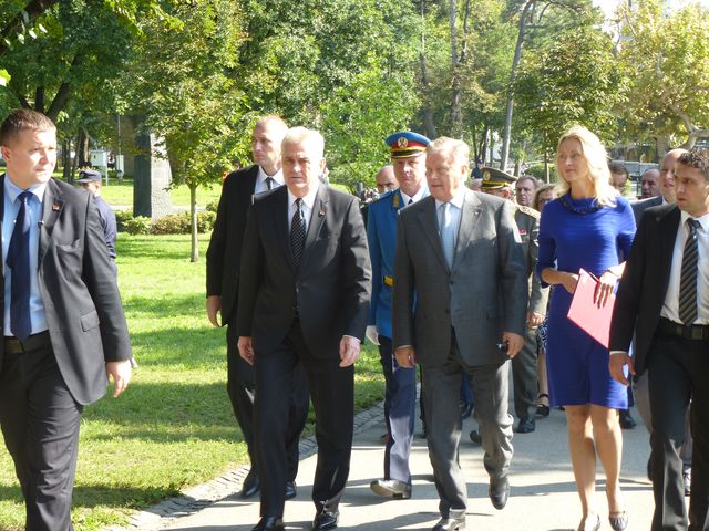 Президент Республики Сербия Томислав Николич и Президент ОАО «Российские железные дороги» Владимир Якунин   Торжественная церемония открытия памятника в честь русских и сербских воинов, погибших в годы Первой мировой войны на рубеже Калемегданской крепости