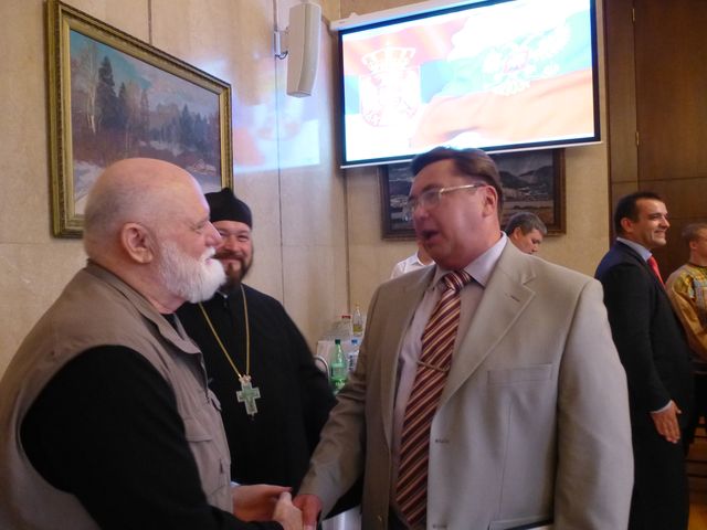 Поэт Виктор Слипенчук и генеральный директор АТД «Путник» Душан Филипович   С настоятелем храма Русской православной церкви в Белграде, протоиереем Виталием Тарасьевым