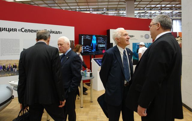 Международная российско-монгольская экспедиция, исследующая химические загрязнения — «Селенга-Байкал»   Слева направо: академик РАН Н.С. Касимов, академик РАН В.М. Котляков, М.В. Слипенчук