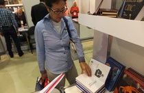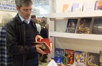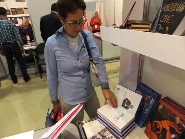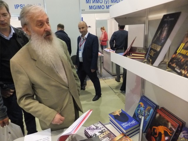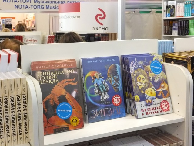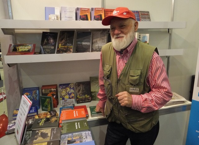 Виктор Слипенчук на стенде Литературной Газеты знакомит читателей со своими