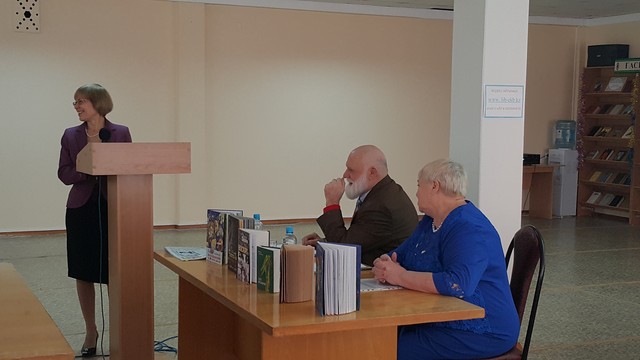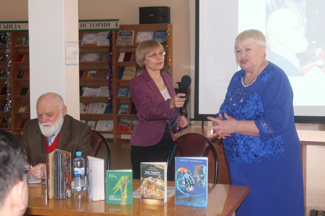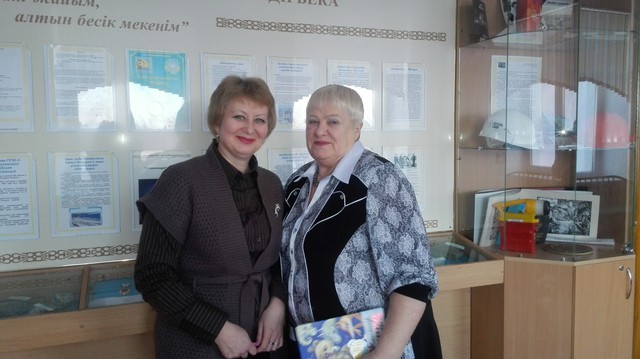 Библиотекарь О.В. Кожемяк и учительница географии школы-гимназии №35 г. Экибастуза Н.Н. Котлярова знакомят читателей с автором.