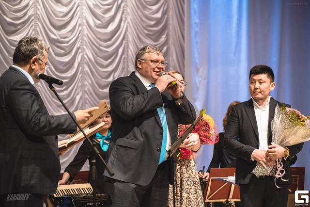 Приветственное слово перед началом концерта мэра г. Улан-Уде Александра Михайловича Голкова и композитора Виктора Алексеевича Усовича   Ведущий концерта Абида Лыгдынов