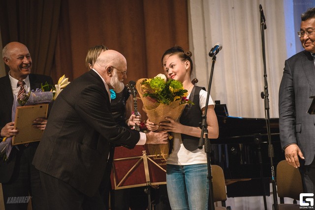 Ольга Жигмитова и заслуженный деятель искусств России и Бурятии, профессор Олег Огнев представляют зрителям полюбившихся музыкантов Концертмейстер и аранжировщик - Дарья Коркина