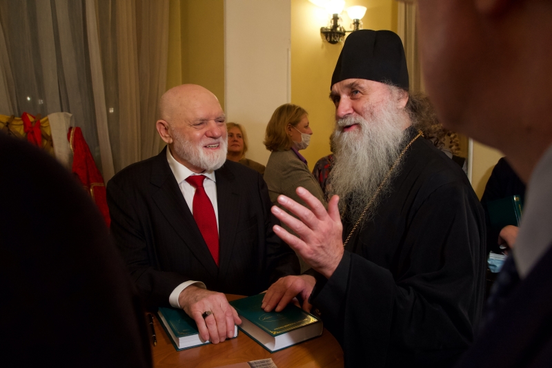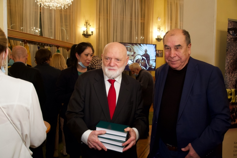 Заслуженный деятель искусств Республики Бурятии и РФ композитор В.А. Усович дарит В.Т. Слипенчуку книгу "БУРЯТЫ традиции и культура"