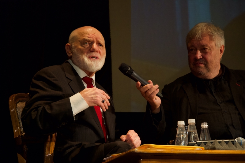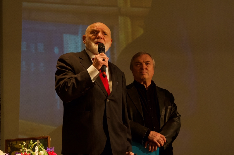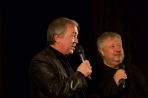 Ведущие Творческого вечера: писатель, главный редактор газеты "Аргументы недели" Андрей Угланов и Народный артист России, земляк Виктора Трифоновича, Сергей Степанченко.