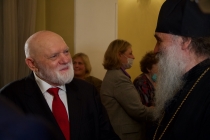 Жерар Коньо – литературовед, искусствовед, переводчик (перевёл книги В.Т. Слипенчука «Зинзивер» и «Улыбка капитана» на французский язык) поздравил автора с юбилеем и пожелал ему крепкого здоровья и новых творческих успехов!