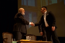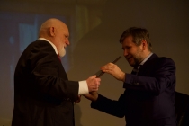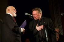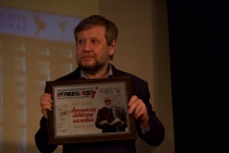 Секретарь Союза писателей России, рабочий секретарь Правления МГО СПР, главный редактор газеты «Московский Литератор» Иван Голубничий вручает В.Т. Слипенчуку Диплом и одноимённую медаль литературно-общественной премии «Жизнь задыхается без цели» в честь 200-летия великого русского писателя Ф. М. Достоевского