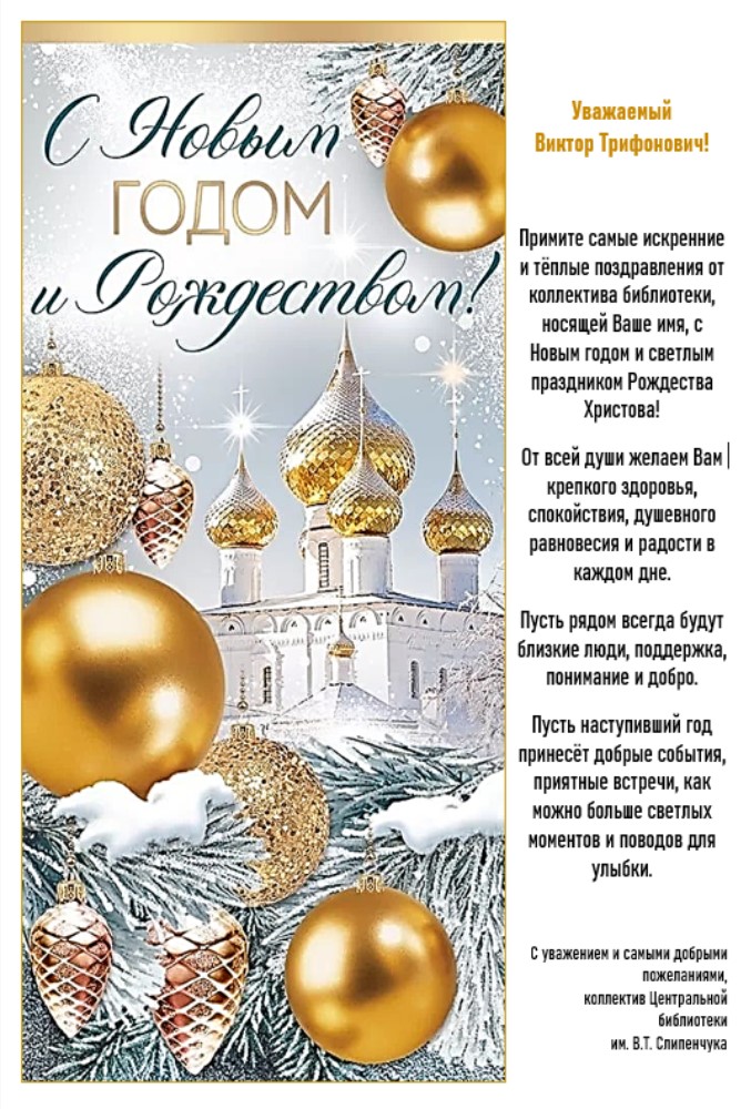 В адрес В.Т. Слипенчука пришло поздравление от коллектива Центральной библиотеки села Черниговка.